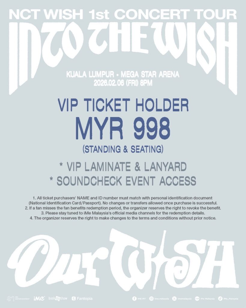 韩国超人气男子组合 NCT WISH 将首次登陆马来西亚,带来属于 NCTzen 的独家音乐盛宴!由 iMe MY 主办的《NCT WISH 1st CONCERT TOUR ‘INTO THE WISH : Our WISH’ IN KUALA LUMPUR》,将于 2026年2月6日晚上8点 在 吉隆坡 Mega Star Arena 盛大开演,绝对不容错过!